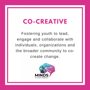 MINDS work alongside youth with lived experience, community members and researchers to understand and help those living with mental health and wellbeing in London-Middlesex. By designing, piloting and testing innovative solutions developed locally, we know we can make a difference in the lives of youth in our community.